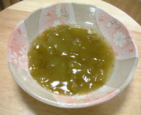 水分補給用と書かれておりますが、これは約97%が水分で出来ているようです。ただ、1日の必要な水分量をこれで補うには私見では1000グラムはざっと必要と思いますので、これは本当に介護用と考えた方がよいかも知れません。 味は、口の中に流し込まれるにはこれくらいが丁度良いのかも知れません。むせない程度にどろどろとしている点、短冊状に切れている点もその点のみを考えた食品と思わせます。健常なときは変な物と思いますが、たしかに喉ごしだけは良いと思います。 |